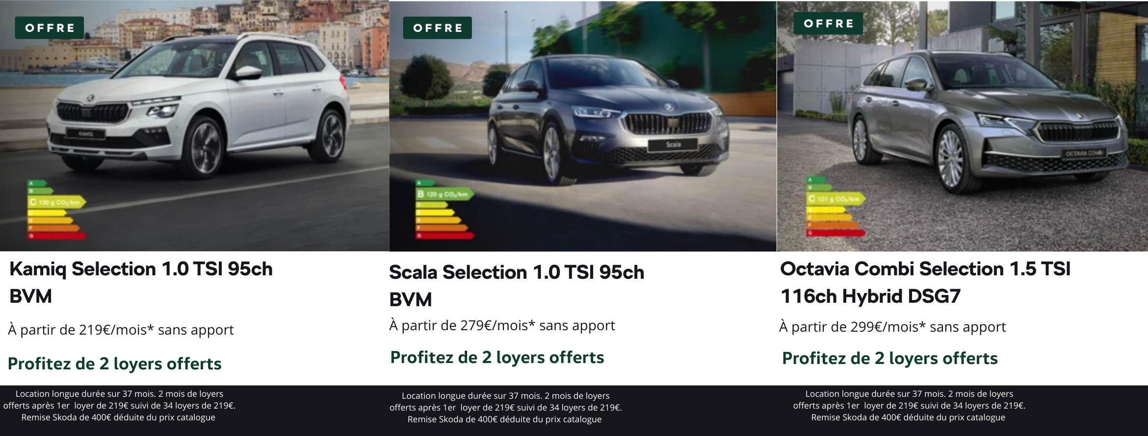 Enfin, le Škoda Octavia Combi est un break hybride spacieux et technologique, parfait pour les familles ou les grands trajets. Il est disponible à partir de 299 € par mois sans apport.